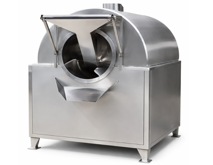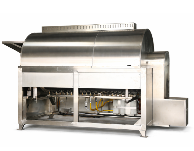 Batch-type roaster using LPG as the heating source for spices, grains, millets and nuts.