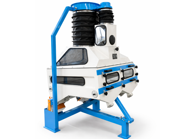 Separates stones and foreign particles from cumin, coriander, and similar seeds using gravity and air flow.