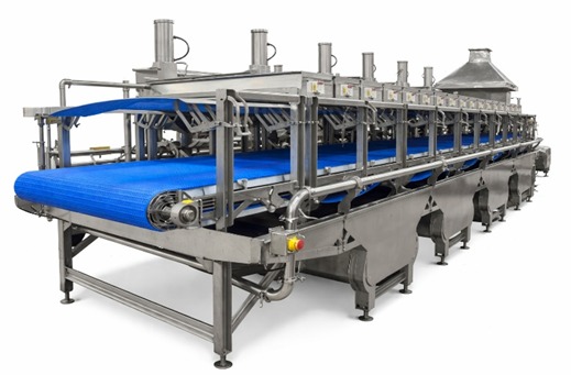 Seafood processing equipment is designed for efficient, hygienic handling and automation across the entire processing line. It includes post-grading material handling systems, soaking automation, and ring pack automation for streamlined operations. Integrated post-IQF material handling and clip-type glazer ensure uniform coating and product quality. Secondary packing automation for touch free operation, reduce fatigue and manpower optimisation.